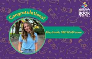 This month, the Savannah Book Festival celebrates the graduation of our SCAD Intern, Riley Heath. Riley is a senior writing major who contributed to our graphics and organic social media. She will be attending Columbia to pursue a master’s in Narrative Medicine.